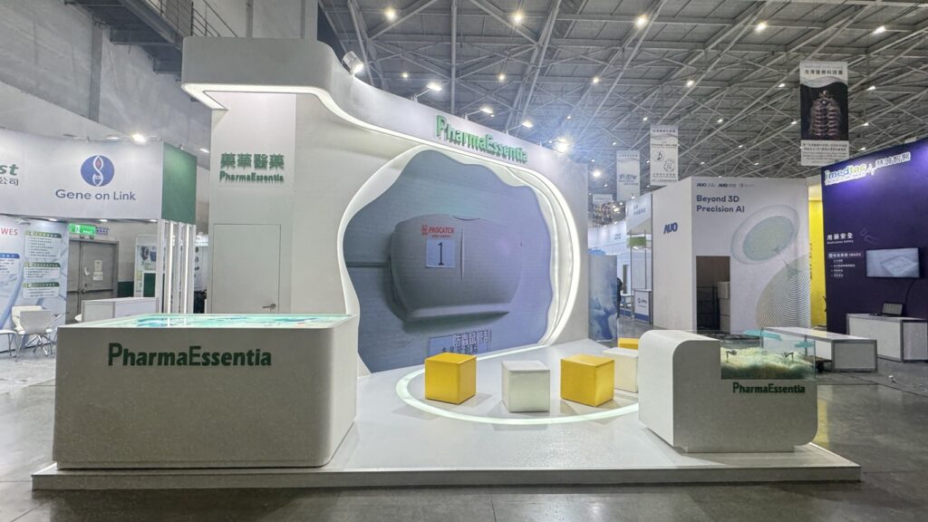 HarperLogan 為藥華科技量身打造品牌攤位,透過空間與影像整合,呈現其於全球生技醫藥領域的專業形象與研發實力。 正面以大型 LED 螢幕作為主要視覺核心,結合流線型結構框架,形成高度辨識的品牌入口。動態影像內容不僅吸引展場目光,更能有效傳遞藥華科技在科學研發、臨床應用與企業使命上的核心訊息,使品牌故事在第一時間被清楚理解。